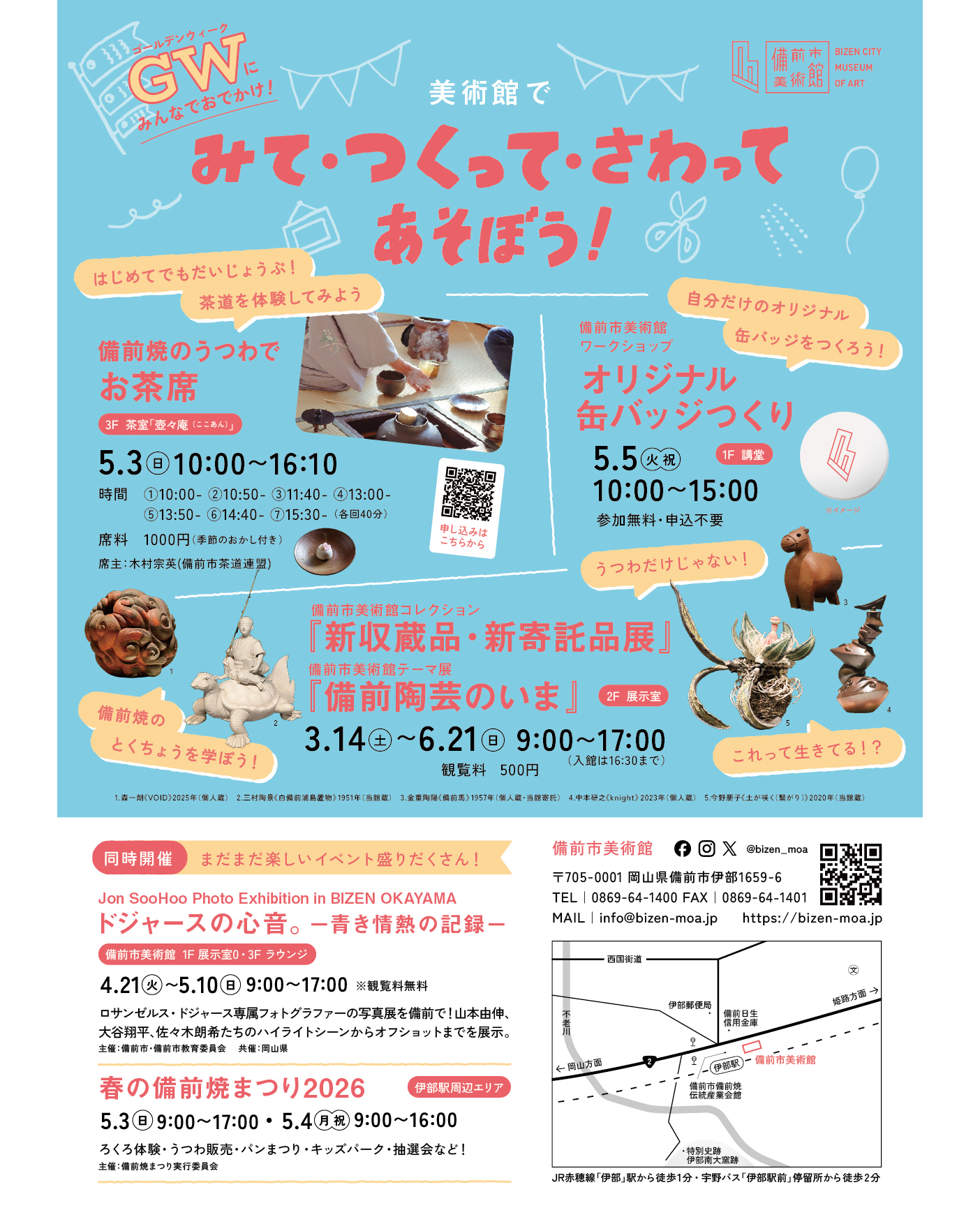 2026年のGWは備前市美術館をはじめ、周辺でも楽しい催しがいっぱい。ぜひ備前に訪れてくださいね。