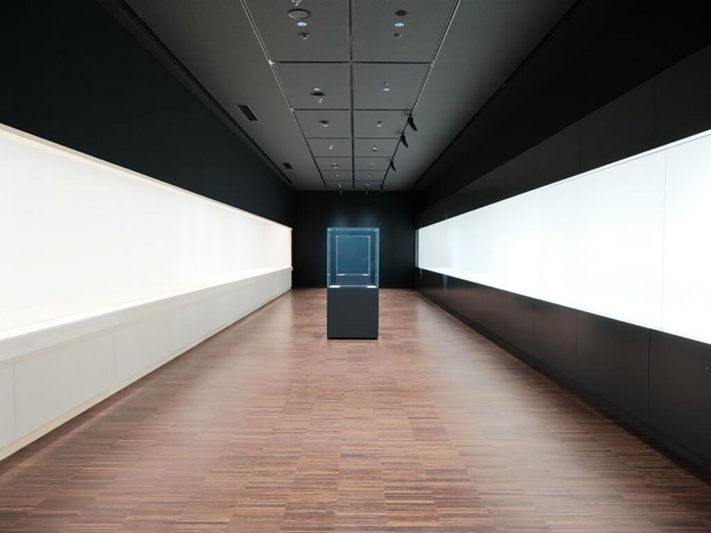 2階には3つの企画展示室があり、備前焼をはじめ、工芸、絵画、彫刻、デザインなど多彩な展覧会が予定されています。一部のスペースでは、焼き物の質感を直接楽しめるガラスケースのない展示も。